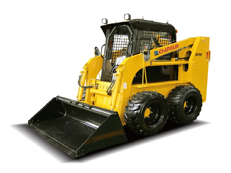 The loader is equipped with dual joysticks for both driving and loading functions, offering straightforward and reliable operation for users of varying experience levels.